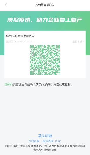 绿码代表转供电终端用户电价执行到位,即当月转供电费优惠在5%及以上,转供电主体已将优惠落实到终端企业。