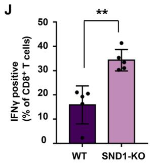 这表示,SND1的缺失可以促进抗原提呈、增加CD8+T细胞浸润、增强抗肿瘤免疫力。