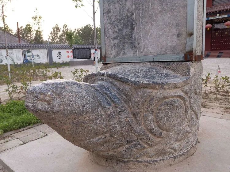 碑座为龟趺。龟趺又名赑屃、霸下等,是古代神话传说龙之九子中的第六子,形似龟,善负重。此龟趺碑座采用了写实的雕刻手法,龟首前伸上昂,凸显负重之吃力;龟背拱起幅度不大,龟甲止于龟背边缘;龟身浅浮雕四肢和水波纹,简洁明快。该龟趺整体神态逼真,浑圆精悍,与其他常见的神化夸张的龟趺形象大不相同。