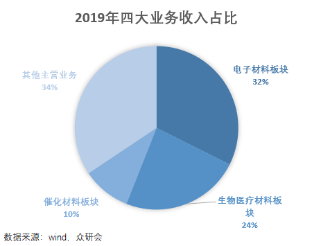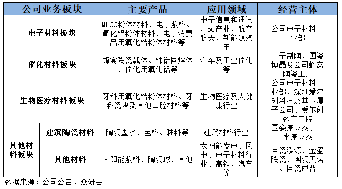 国瓷材料布局电子陶瓷材料、生物医疗材料、催化材料、其他材料四大类。