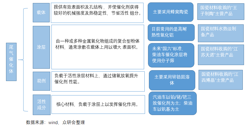 国瓷材料实行以蜂窝陶瓷为主的催化材料板块重点布局,通过2016年4月收购江苏天诺,11月收购江苏博晶科技,2017年通过收购王子制陶实现催化材料的全产业链布局。