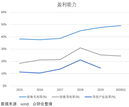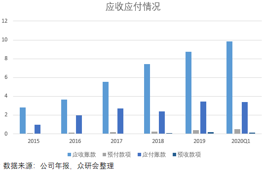 资产负债率处在比较低的水平,2019年是17.7%,应收账款这几年增速比较快,2019年达到了应收账款占营业收入41%,主要和公司下游市场拓展,近几年拓展氧化锆牙科市场,面对下游医院比较强势。