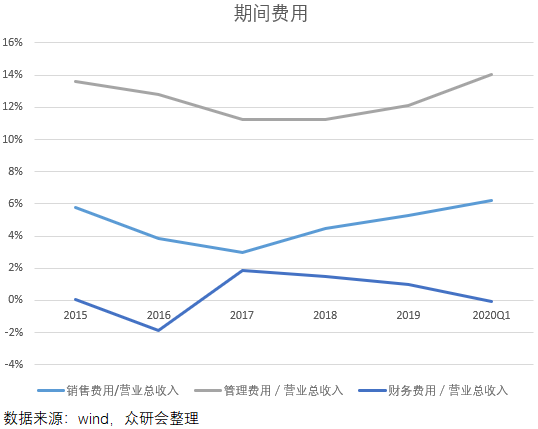 国瓷材料期间费用中销售费用和财务费用都比较低,管理费用高于同行水平,2019年达到12%,从管理费用结构来看主要是职工薪酬占比高,这和国瓷材料两次实行激励计划,员工工资支出增加有关。