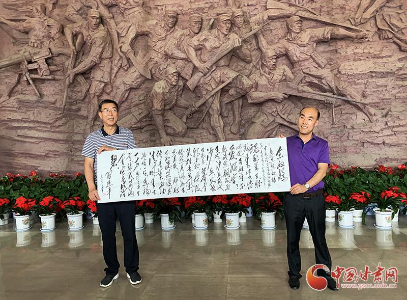 当天,“追寻红色足迹 弘扬延安精神”——纪念中央红军长征到达甘肃85周年调研采访团一行,还参观了两当兵变旧址及全国青少年教育基地。省延安精神研究会副会长张富奎向两当兵变纪念馆赠送了毛体书法作品。