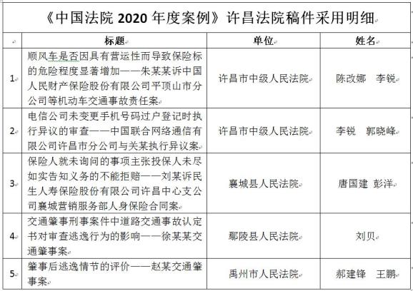 原标题:《案例 ▏许昌法院5篇案例入选《中国法院2020年度案例》》