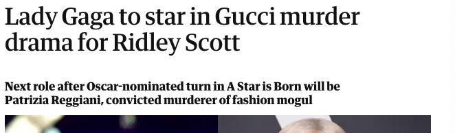 2015年,老雷说他已经拍过2700条商业广告,又说Gucci家族的故事非常适合拍成电影。现在这部电影确定的主演是Lady Gaga。