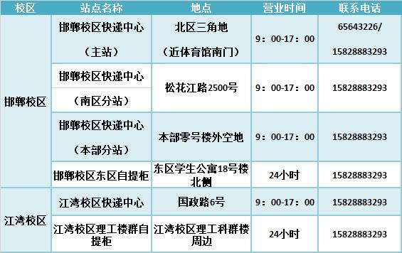暑假期间邯郸校区、江湾校区快递服务中心(菜鸟驿站)正常开放,站内提供寄件、取件服务。