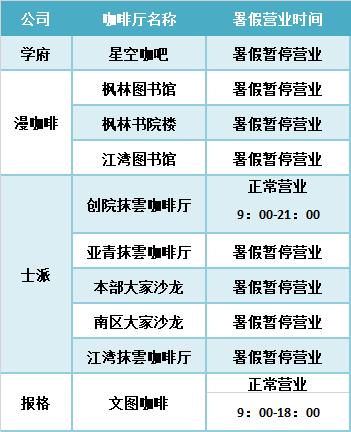 如咖啡厅因故导致营业时间临变动,请师生以现场通知为准。