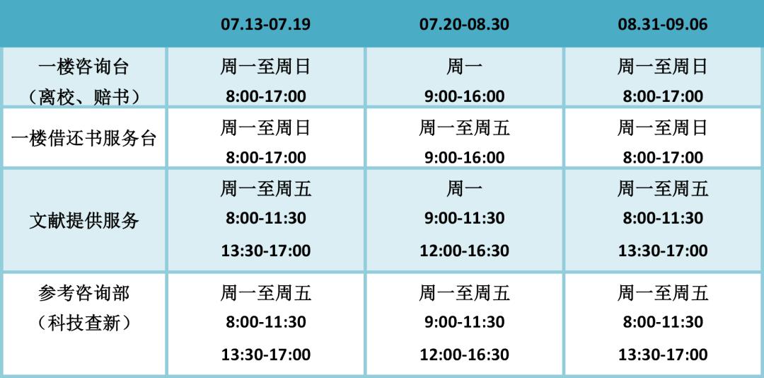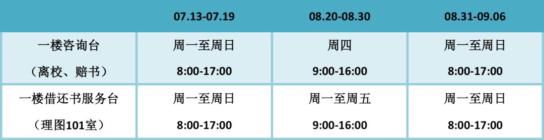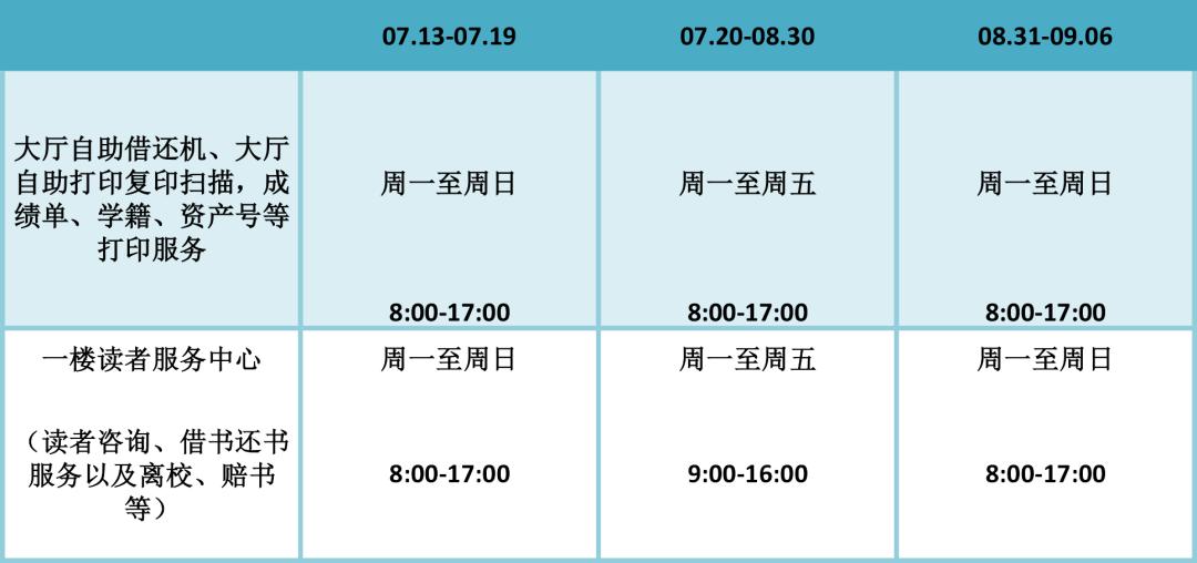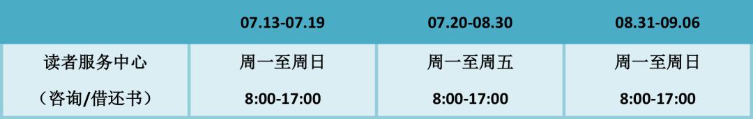 7月13日至9月6日暑假期间,图书馆线上服务、预约借书服务正常开放。