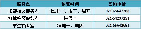 7月20日至8月28日,学生职业发展教育服务中心邯郸校区、枫林校区服务点及学生档案室值班时间安排如下