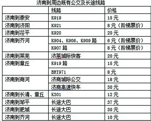 为加强济南与周边区县的联系,一些公交线路和城际公交线路陆续开通。目前,济南市区与章丘、长清、济阳、商河都有城际公交线路,与莱芜之间还是之前开通的济莱城际快客,与泰安、齐河、茌平这些都市圈内的城市也慢慢开通了线路。