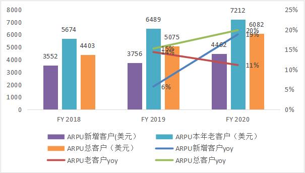 从上述分析可知NDR对于企业发展的重要性,企业需要通过不断经营去提高NDR,而实际上SaaS公司披露的NDR指标包含的内容不仅是企业自身经营效率的提高——由于原产品升级导致单价的提升以及老客户增购产品数量,还有本身的内在因素的影响干扰——由于新客户因素(公司新客户往往会比老客户的客单价低),因此在部分SaaS公司发展前期甚至可以看到高达150%-190%的NDR指标,由于saas公司前期给客户通常会有一定的促销价格甚至免费试用,因此在同一年新客户单价通常会低于老客户,这也导致通过推出新产品使得如原有客户的50%增加付费50%(或者25%的客户增加100%的付费)就能够达到120%的NDR水平,可见持续不断地获客是saas公司经营过程中不可缺少的一部分。