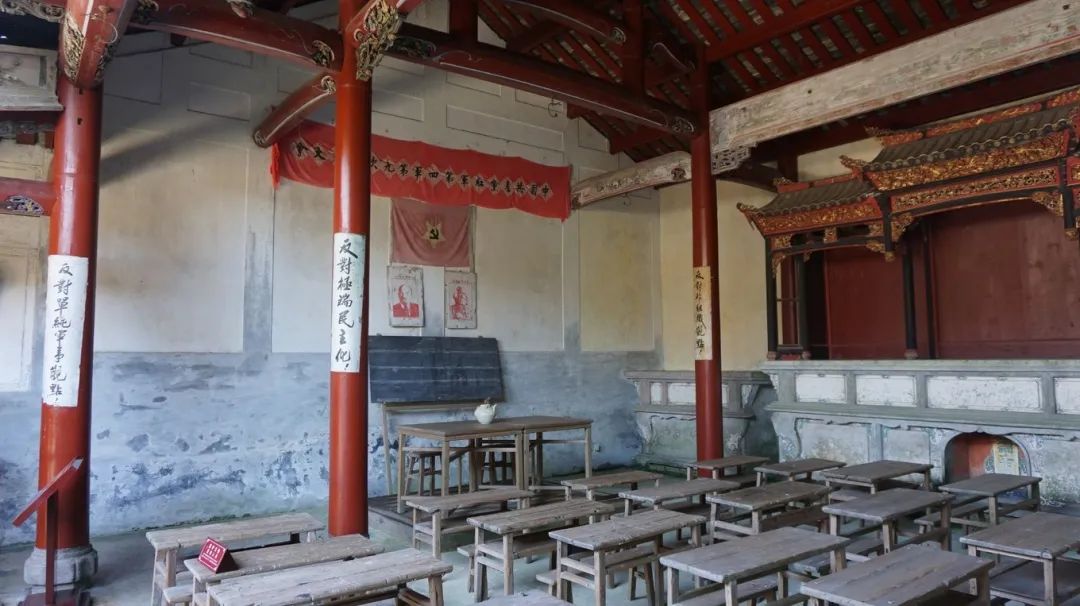 在会址前面,有大片的水田,春天这里种植油菜花,秋天收获的季节则是金灿灿的水稻或是向日葵,美不胜收。古田会议会址,本次参观的重头戏,古田会议会址原为廖氏宗祠又名万源祠,始建于1848年,为单层歇山四合院式建筑。1961年古田会议会址被国务院公布为第一批全国重点文物保护单位。