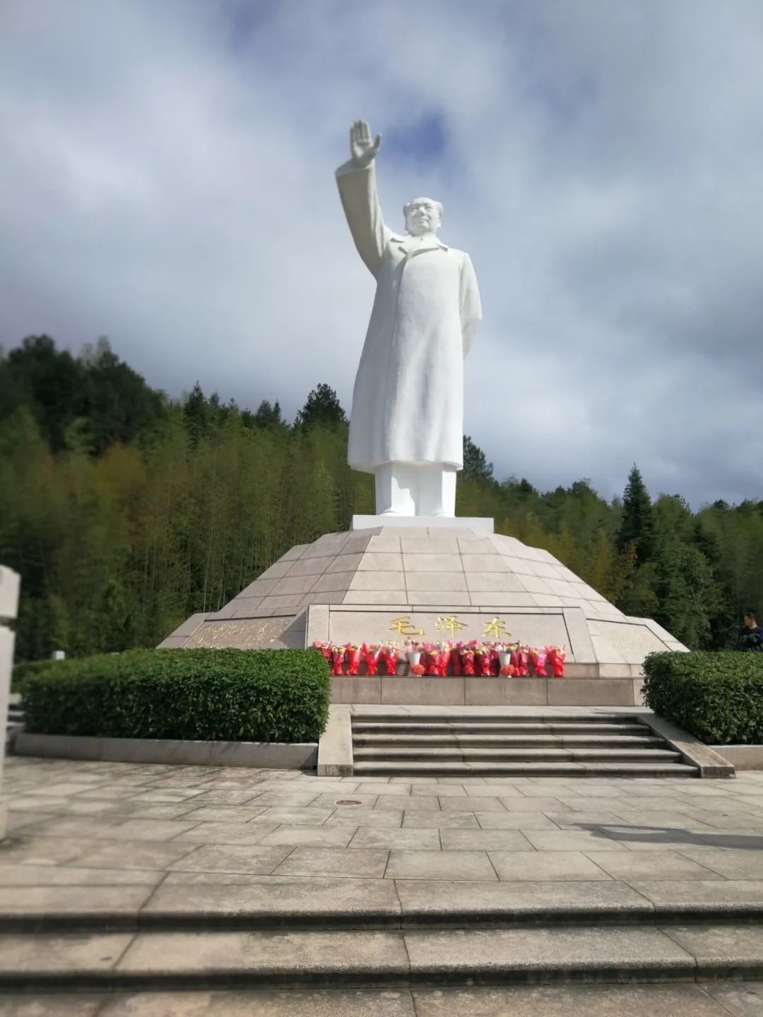 沿途到处飘扬的红旗提醒着每位游客
