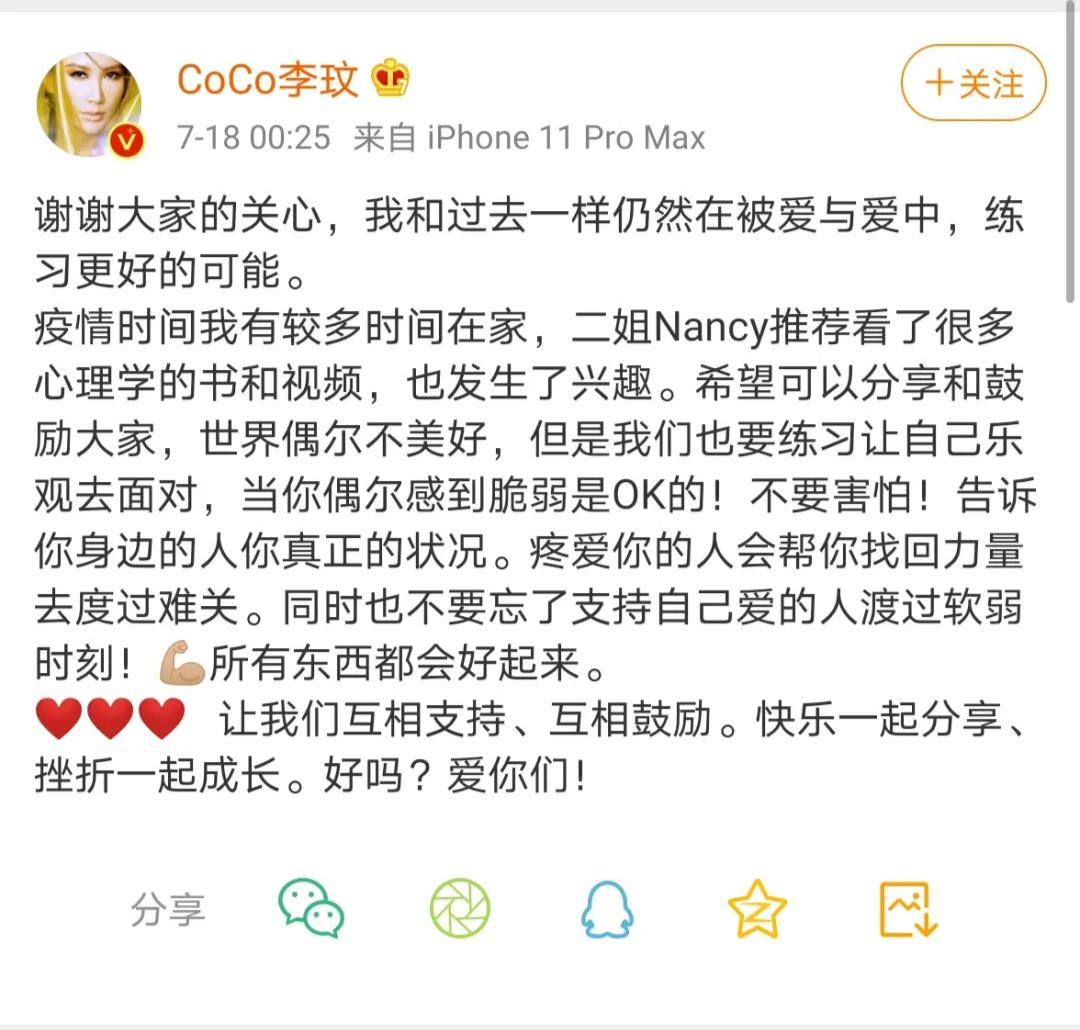 但时隔几日,李玟就主动发文解释,平息了大家的猜测。