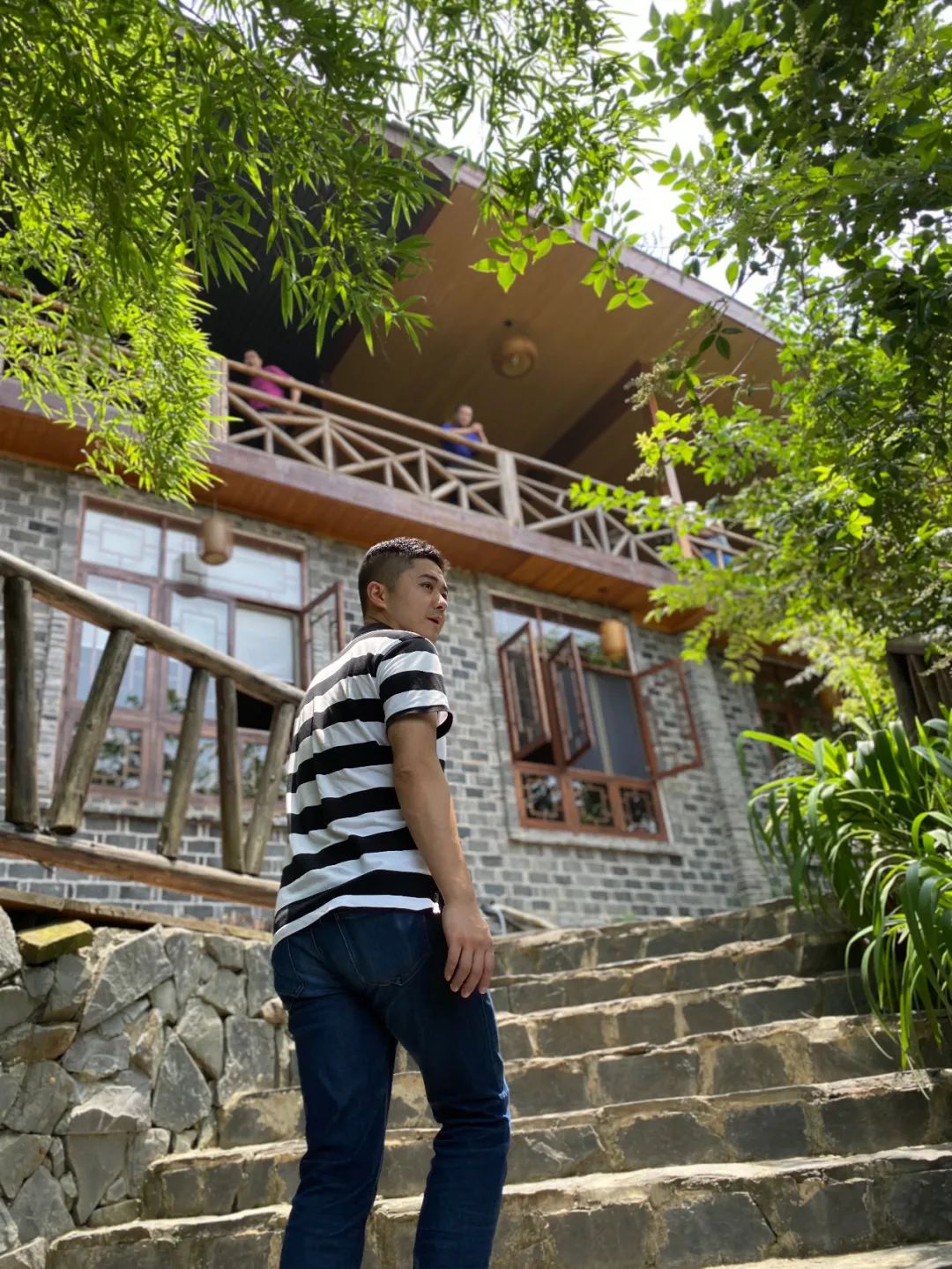 月里藏桃山庄,光听名字就仙气满满,从牌楼往里走,迎接我们的是一条清澈的小河,河上架一座木桥联通内院,站在桥上随手拍一张都是大片。缓缓走过木桥,蜿蜒曲折的石板路完美对接,两旁茂密的竹海环绕仿若置身森林。一转身,踏上青砖台阶,一座依山而建、古香古色的三层木屋映入眼帘。山庄占地面积近200亩,山水相依,错落有致,集民宿、露营、美食、休闲娱乐为一体~山庄老板是个有情怀的人,为保护原生态景观、守住乡情,山庄仅在原有的房屋基础上,进行青砖木楼、青石木桥的改造,最大限度地保护了生态环境,确保四季美景尽收眼底。