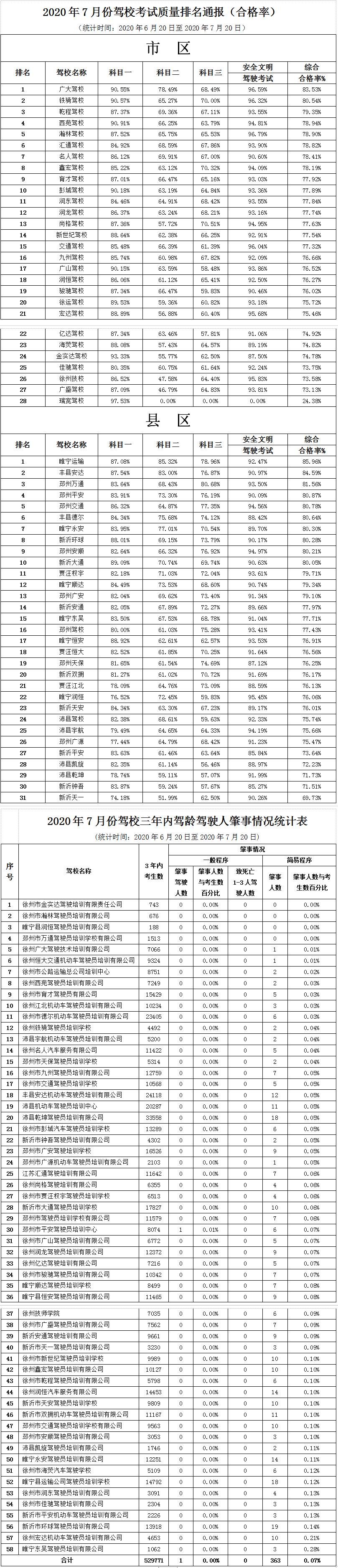 徐州市公安局交警支队发布《全市驾校考试质量排名及驾校三年内驾龄驾驶人肇事情况》。