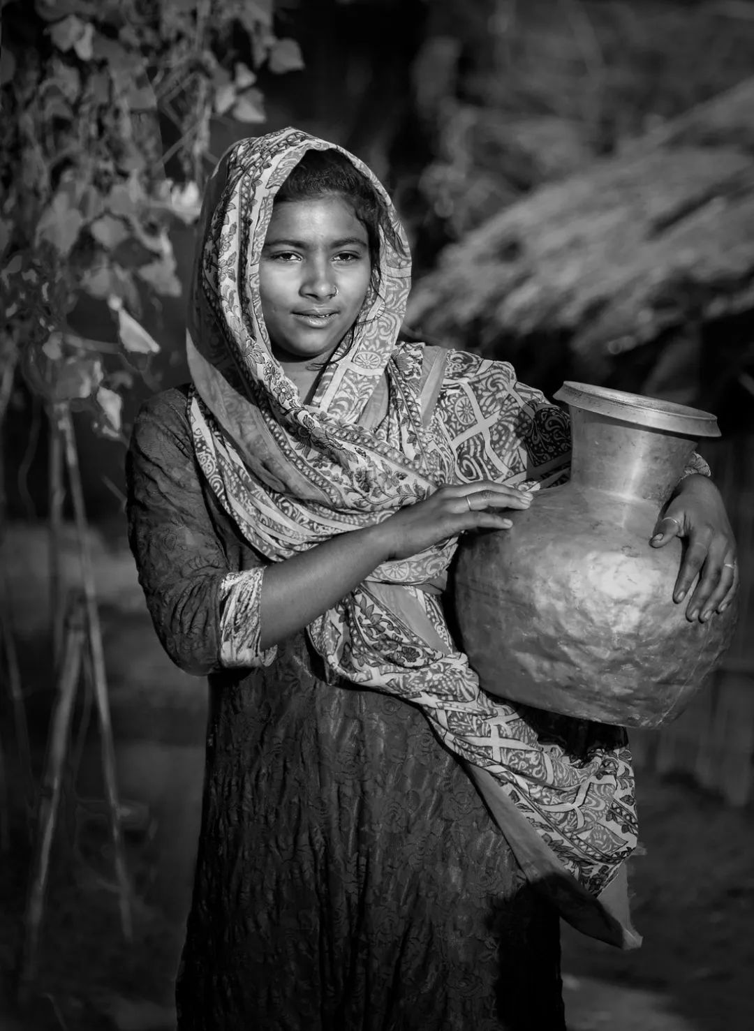 在孟加拉国的科克斯巴扎尔,当地人使用一种传统的渔船捕鱼,其造型类似弯月,也被称为月亮船。月亮船可谓是孟加拉的重要标志物件,也是一道著名的风景线。在库克斯巴扎海滩旁边,有一个小渔村,渔民以打鱼为生,生活贫困和艰辛。渔村的淡水资源匮乏,需要到固定地点打水。图为打水途中的妇女。