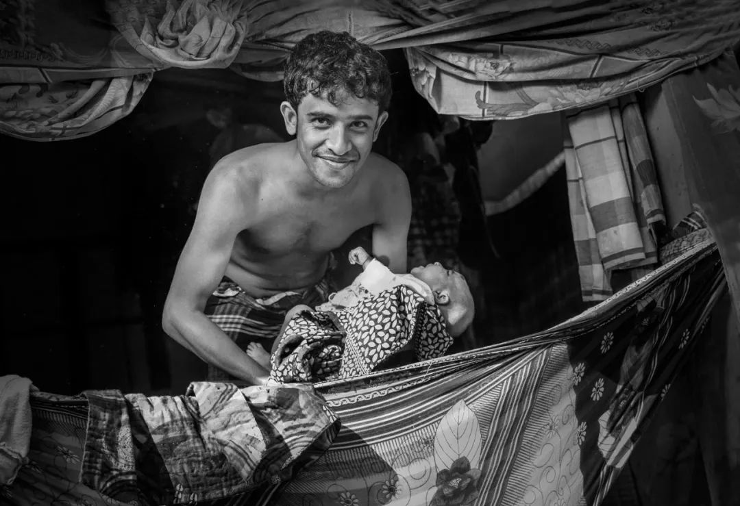 2017年,孟加拉根据新制定的法律。儿童最低结婚年龄降至0岁。只要父母和法院都同意,任何年龄低于18岁的儿童可以在“特殊情况”或“对青少年有极大好处”的情况结婚。孟加拉是亚洲童婚率最高的国家,超50%女性,未满18周岁,就已结婚。其中,近20%的女性,在15周岁前就已成婚。图片为已经当上爸爸的15岁男孩和他的孩子。