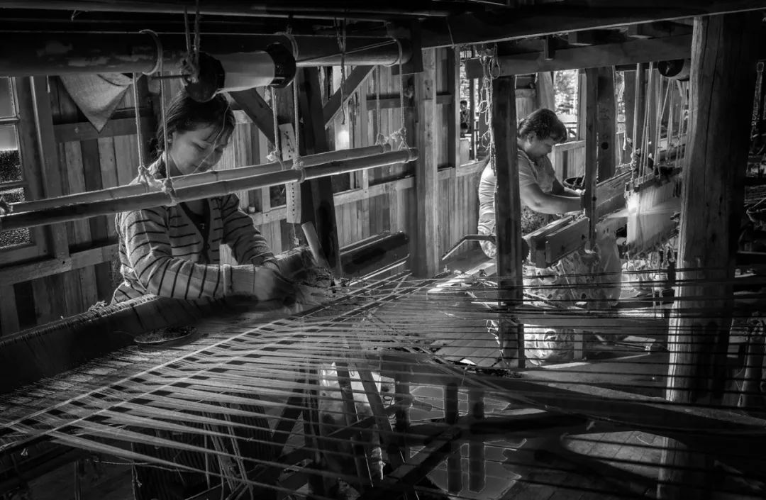 缅甸茵莱湖岸边有个特色的“纺织村”。他的特色除了采用传统的制作工艺外,最大的特色是用莲藕的茎剥出的丝作为纺织品的原材料。村民们从湖底生长着的莲花根茎中抽出极细的丝,将这些丝揉搓制成线并进行染色纺织。