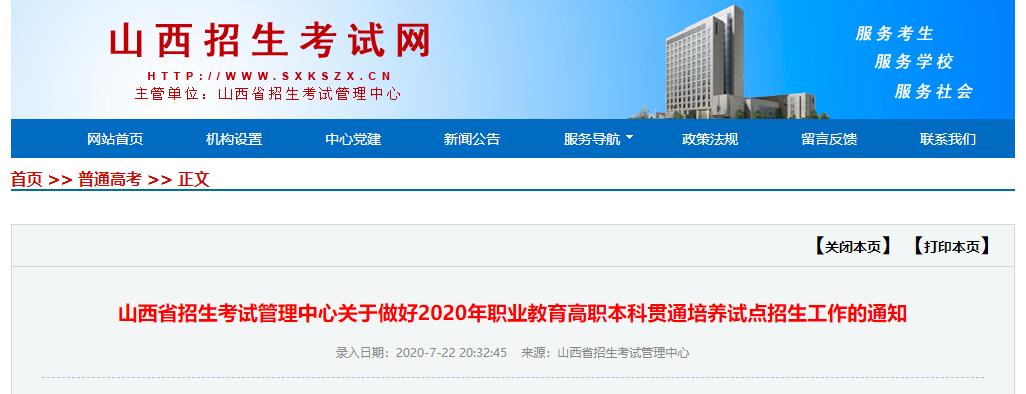 试点专业为高职25个专业点,对接本科院校的20个专业点。2020年高本贯通培养试点招生院校及专业见《山西省2020年全国普通高校招生填报志愿指南》。