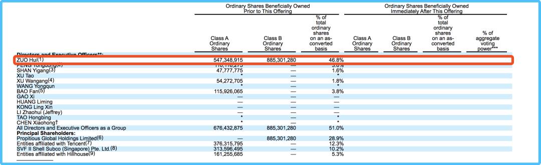 招股书披露,本次IPO前,贝壳集团所有高管及其董事共持有公司51%的股份,其中左晖通过Propitious Global Holdings Limited公司持有28.9%的股份,但拥有46.8%的投票权,为公司第一大股东。