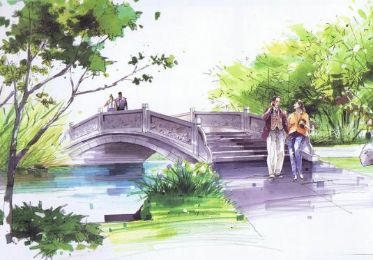 一派清渠绕郭长,西城落日水浮梁。