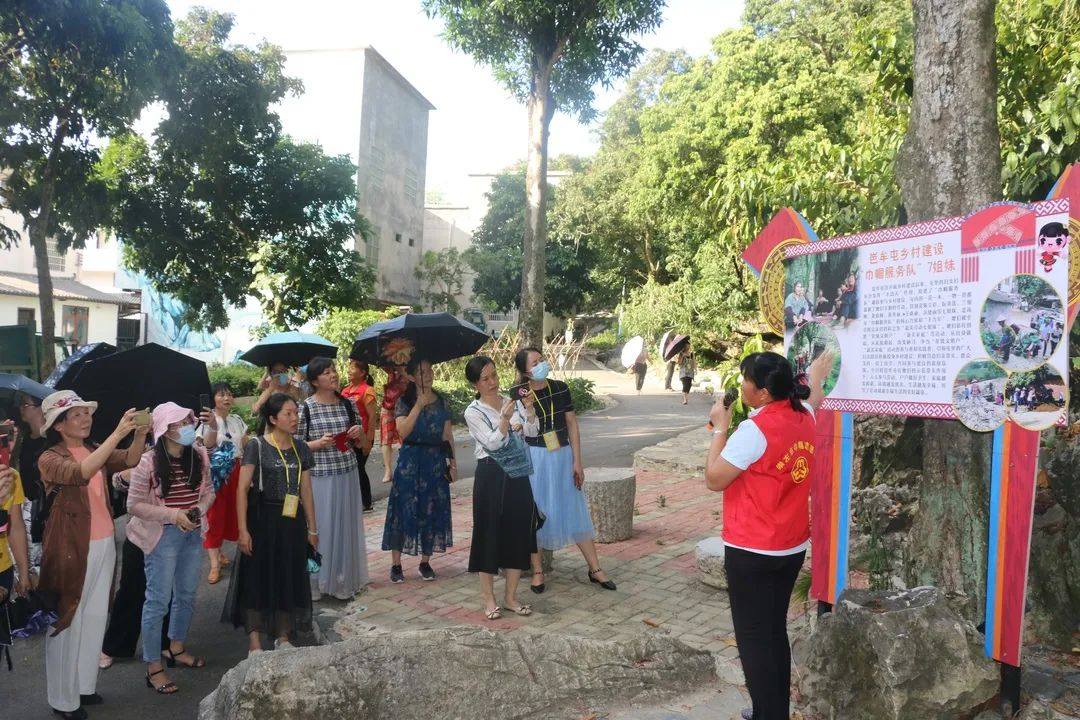 为学习借鉴基层妇联组织建设经验,培训班组织全体学员赴崇左市江州区江州镇保安村叫豆屯、板备村岜牟屯开展现场教学。错落有致的居民楼房、明亮整洁的屯内道路、整齐摆放的环保垃圾箱以及房前屋后绿荫环绕、风景如画,引得学员赞叹连连。基层妇联主动作为,积极发挥执委作用,依托产业支撑,争取上级支持,通过模范带头,农民自主自建自管,两屯村民在房前屋后建设了小花园、小菜园、小果园,并完善了屯内各项基础设施建设;制定生态文明村规民约,签订责任状,建立奖惩机制,组建“环保妈妈志愿服务队”,两屯充分调动群众的积极性,营造了妇女带头、群众支持、投工投劳、共同参与乡村建设的浓厚氛围。行动学习