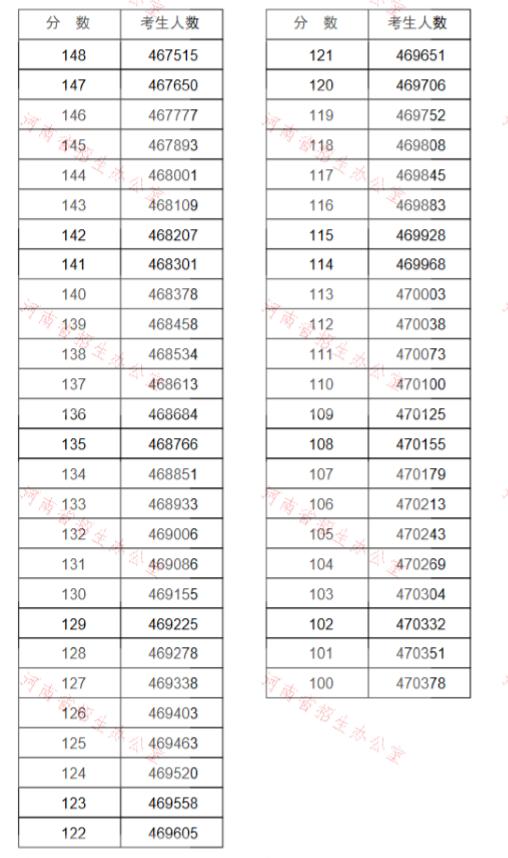 省招办也公布了2020年普通高校招生分数段统计表(一分一段表)。