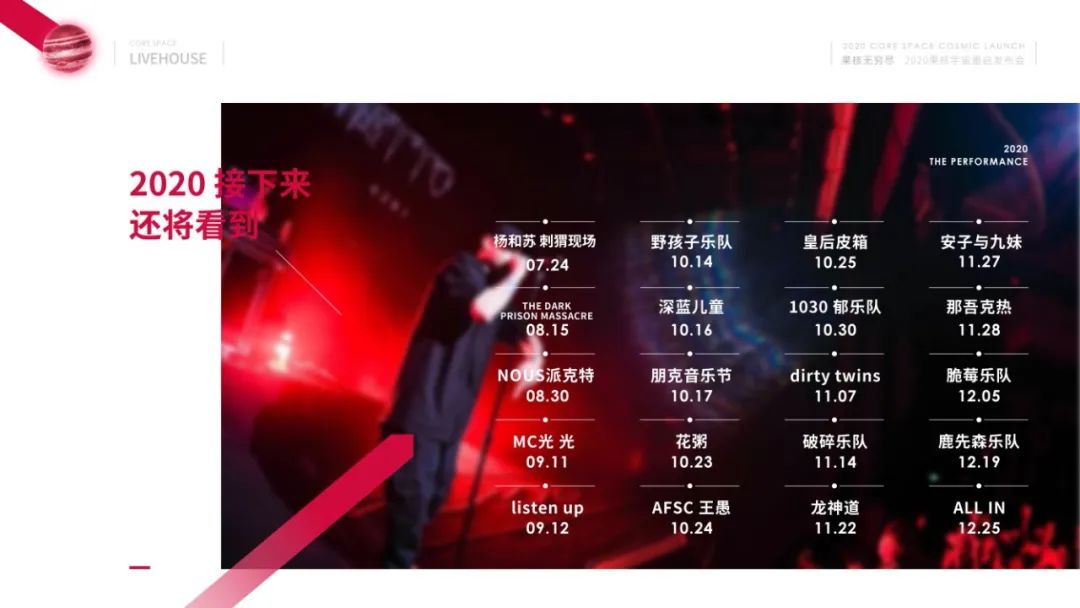 与此同时,发布会在bilibili、淘宝直播两个直播平台进行了实时直播。这场被网友戏称为“联欢晚会”的发布会,带着现场和云端的观众们一起,踏上了果核宇宙之旅。星际漫谈 六颗行星的三次碰撞果核宇宙拥有六颗各具特色的星球(果核剧场2020六大演出板块),「果核无穷尽」2020果核宇宙重启发布会将六颗星球两两碰撞,在星际漫谈之中,带领大家深切感受着各个星球的别样魅力,重磅发布了2020果核剧场演出季全内容,一个全新的果核剧场,已然正式亮相!