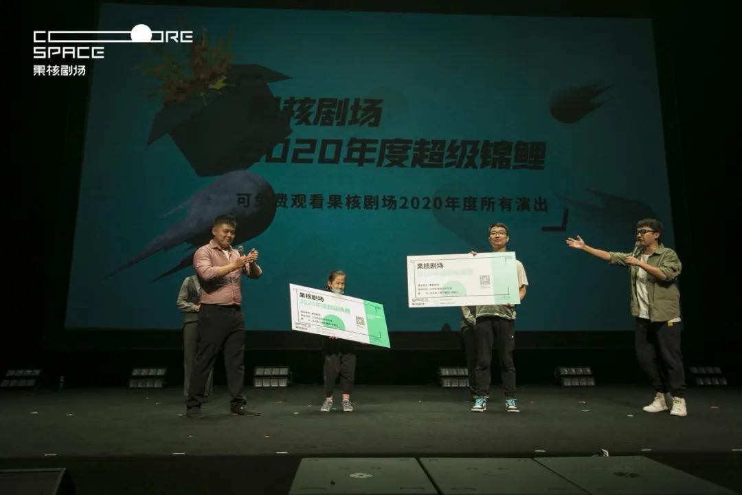 年度锦鲤 果核宇宙之旅的大惊喜年度锦鲤的抽奖环节,将发布会的气氛推至顶峰。四位果核年度锦鲤名额,在现场观众与直播观众中分别抽出了两位(果核锦鲤将免费观看果核剧场2020年度所有演出呦,是不是很羡慕他们呢~)