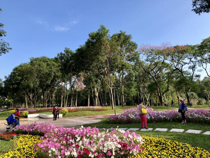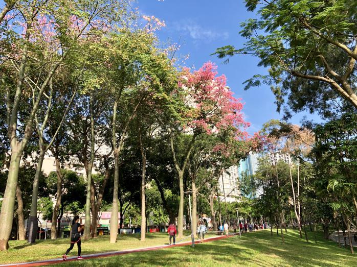 另外,为了更好满足市民运动健康的需求,天河公园新增缓跑径,配套完善园区视频监控系统、夜间景观照明系统。该路径从公园西门开始,沿着天府路至中山大道方向,止于公园小北门,全长1430米、宽2米。缓跑径两侧花草锦簇,远处大树成荫,市民朋友可边慢跑时边观赏美景,感受这名副其实的“绿道”。