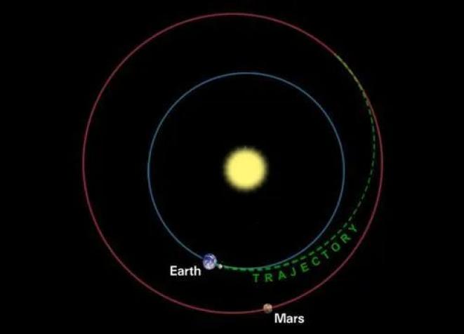 由于地球与火星各自的公转周期不同,两颗星球距离最远时可达4亿公里,最近时相隔5000万公里左右。地球和火星每两年会处于一个适合展开太空任务的理想位置,也就是窗口期。