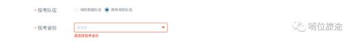 ① “按户籍地报名”需填写户籍地地址,系统自动根据招录计划及所选报考队伍加载可选择的报名省份。如果户籍地省份有代招计划,报名对象需在本省或代招省份中选择具体的报考省份,仅限报考1个省份。如果户籍地省份无代招计划,仅限报考户籍地省份。
