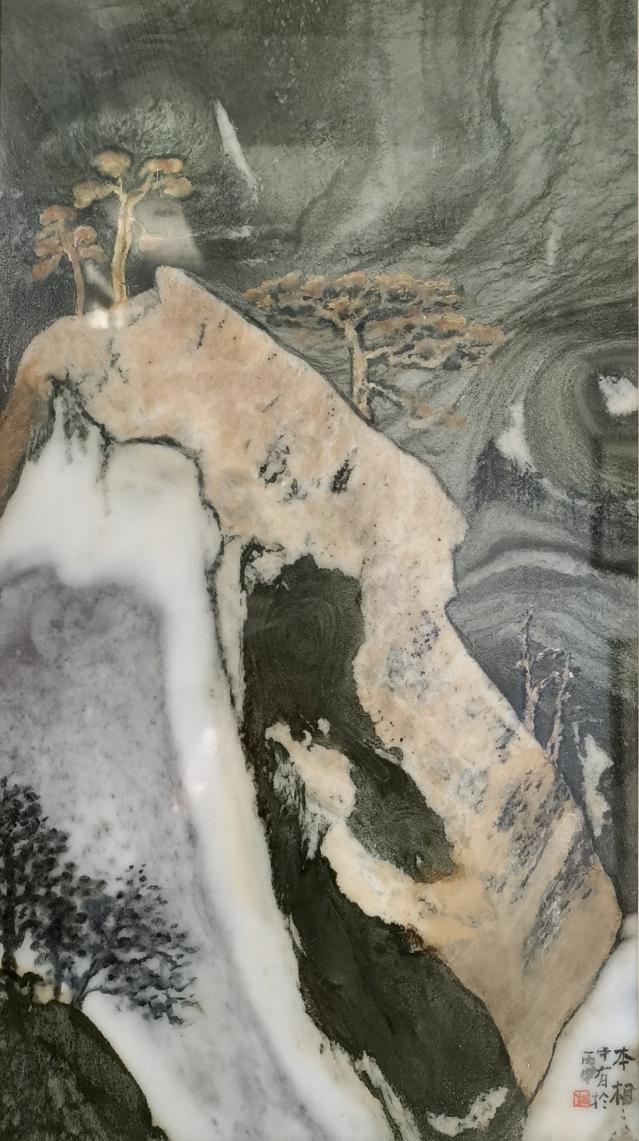 石画是外师石中造化,其内存有原本而来的善美。所以石画的创作是天公造化第一笔,人工创作第二笔,二者“天人合一”则为佳品、妙品、神品,人人皆可为之,人人都有“天人合一”的善美品质,天人之美相互通达。