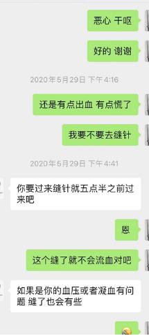 从小刘的微信信息可以看到,5月29日上午9时许,小刘主动加了为他拔牙的滕姓医生的微信。聊天截图显示,小刘告知医生早上五六点钟就流血,一直止不住。医生则回复让他量一下血压,如果血压有点高,早上就会这样,可能要持续几天才能好。