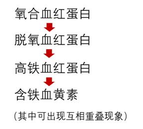 脑出血后血肿内血红蛋白演变过程如图1所示。