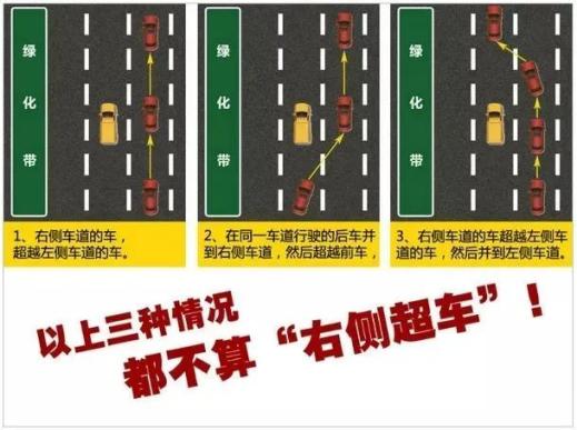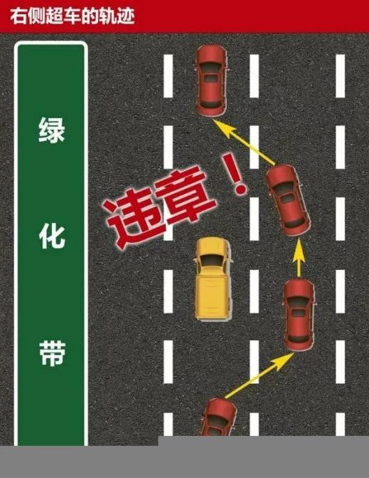 在高速公路上,当遇到前车开“龟速”车,但左侧不便超车时,有些驾驶人会选择右侧强行斜插超车,但右侧超车强行超车车速快+盲区大,被拍到会被扣12分!
