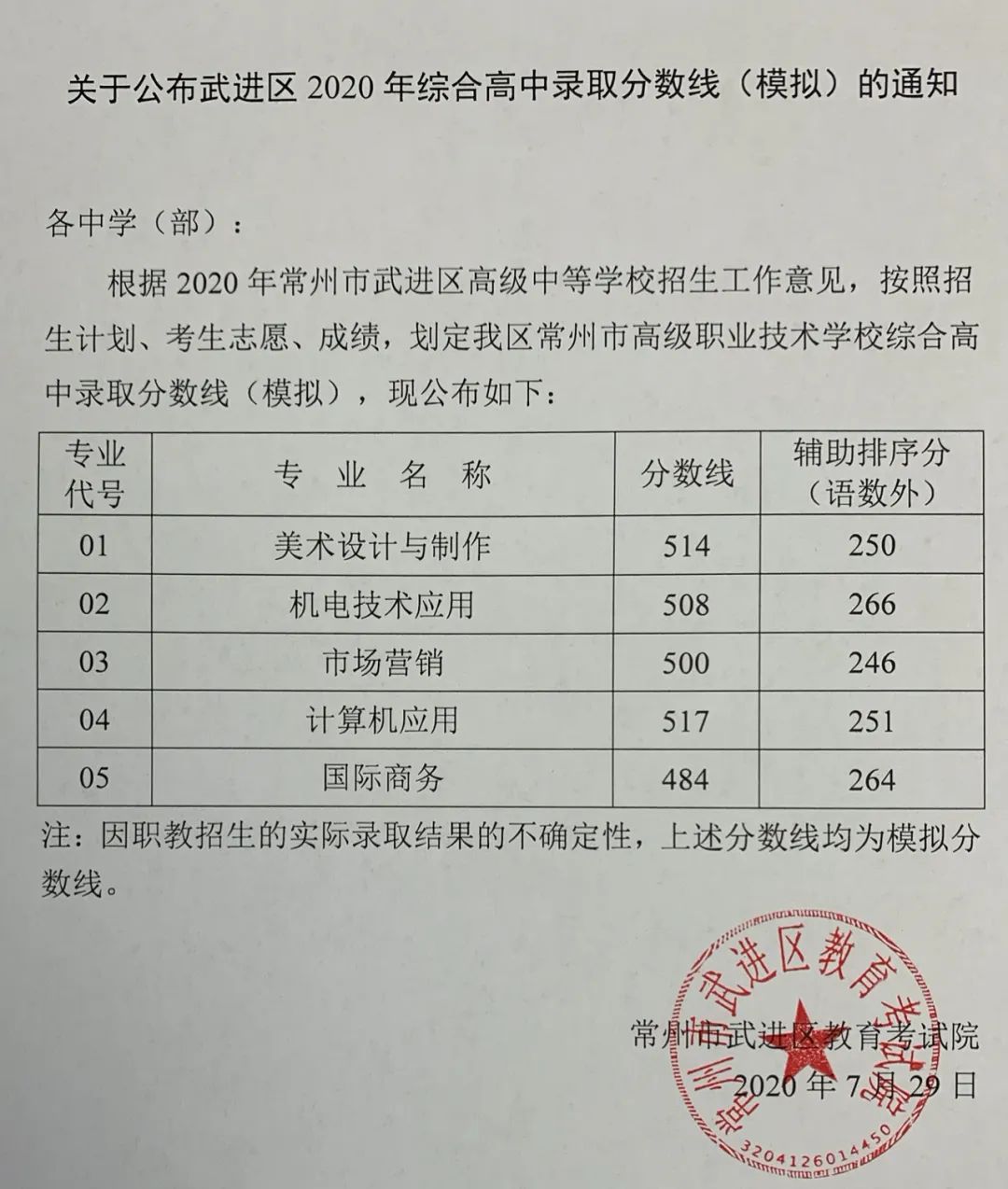 根据2020年溧阳市高级中等学校招生工作意见,依据招生计划、考生志愿、成绩,划定我市省溧中等普通高级中学招生的最低录取控制分数线,现公布如下: