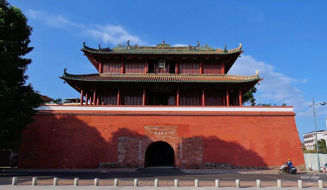 当时,本地政府重新修缮台座,在上面搭建了仿古的简易建筑,用木金字架支撑,五开间一进深,单层重檐歇山顶式。由于座台、门柱与门窗都粉刷为铁红色,因此老百姓也称丽谯楼为“红楼”。
