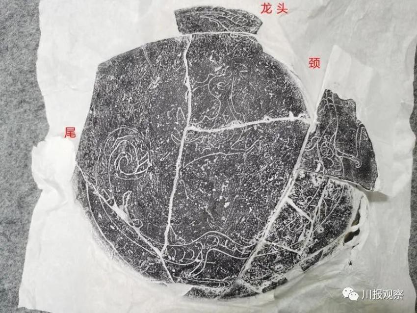 联合遗址考古发掘项目负责人辛中华介绍,这件距今约3200年、阴刻了龙凤纹的陶盖发现时已经碎成数块。当考古人员将它进行拼接后,惊喜出现了。