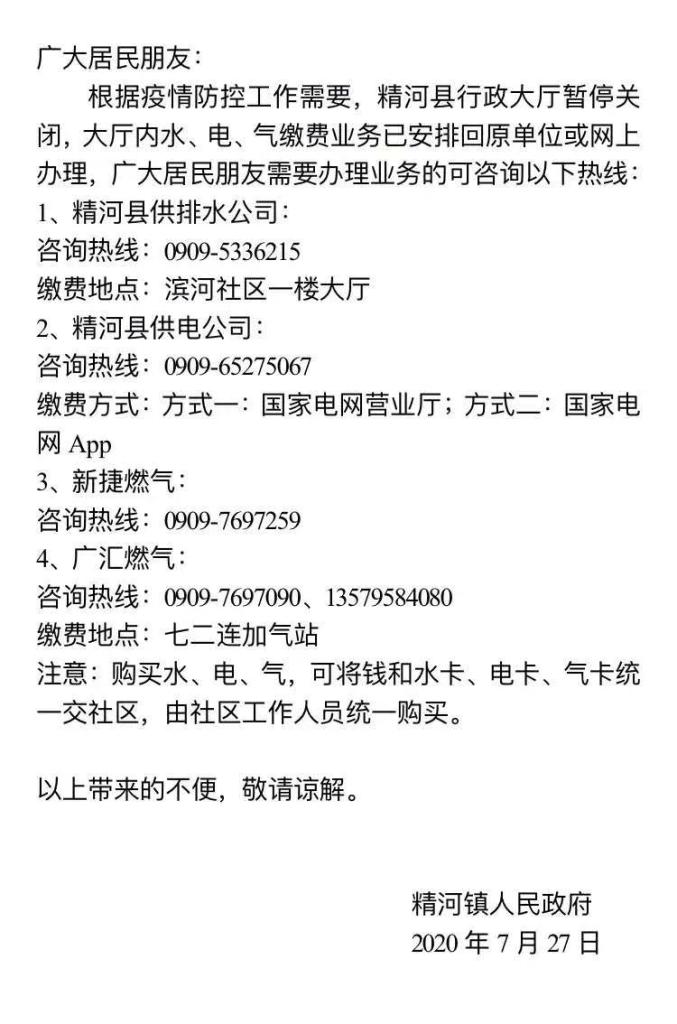 为保证您的健康安全,积极配合博乐市做好疫情防控工作,我公司特推出社区集中办理收费服务。