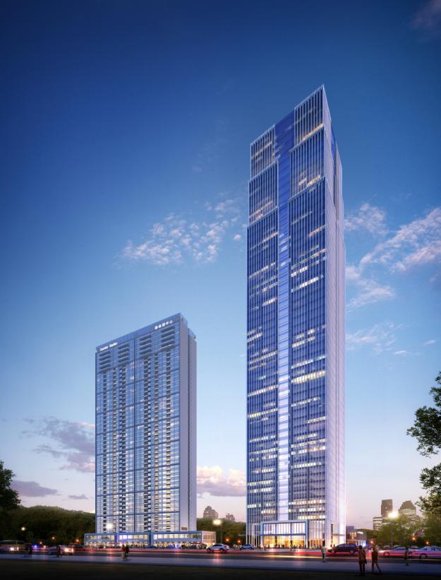 该项目位于万达广场南侧,将建设两栋大型建筑。其中一栋47层超高层住宅,住宅套数为406套;另外一栋54层商业(办公+酒店)用房。计划竣工时间是2021年6月。未来将吸引1200家高新科技企业、2万余高新人才入驻。