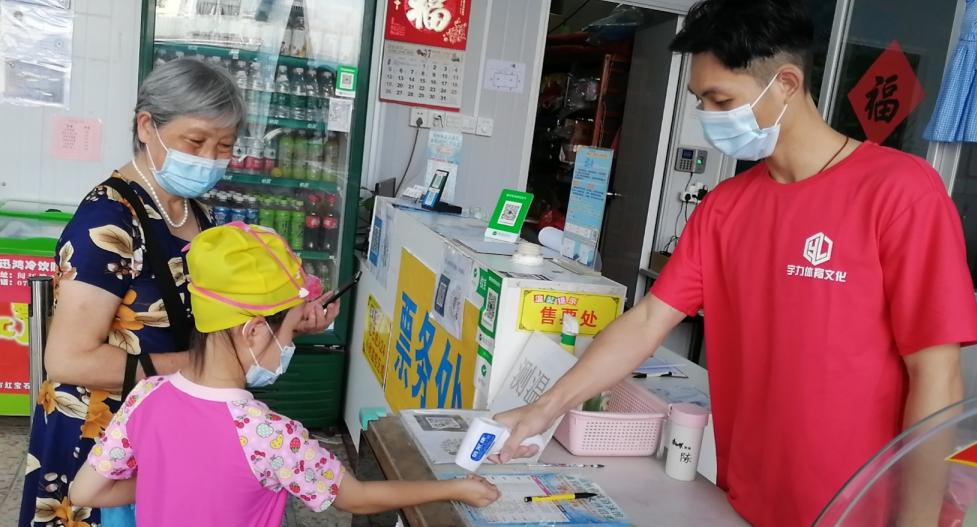 当天下午16时左右,陆陆续续有家长带着小孩前来游泳,只见工作人员先对他们进行测温,然后要求他们扫粤康码才能进入。