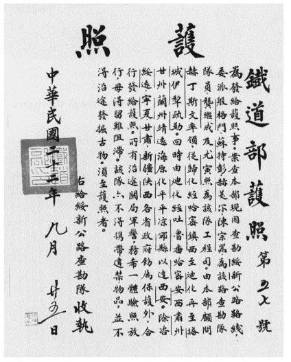 1933年10月,斯文·赫定率领的“绥新公路查勘队”从北平出发,开始了为期十八个月的西北公路勘测。考察队西行路线取道内蒙,沿弱水河岸西行,穿越戈壁到哈密,回程路线正是由哈密经罗布泊、敦煌而到达酒泉(时称肃州)。再从酒泉开始,沿着旧省道经张掖(时称甘州)、武威(时称凉州)而至兰州。回程路线主要在当时中国人称为的“古驿道”、斯文·赫定称之为“丝绸之路”上。