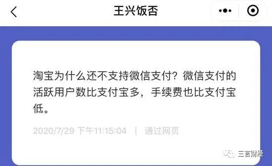 甚至美团创始人王兴也回应了此事:“淘宝为什么还不支持微信支付?微信支付的活跃用户数比支付宝多,手续费也比支付宝低。”