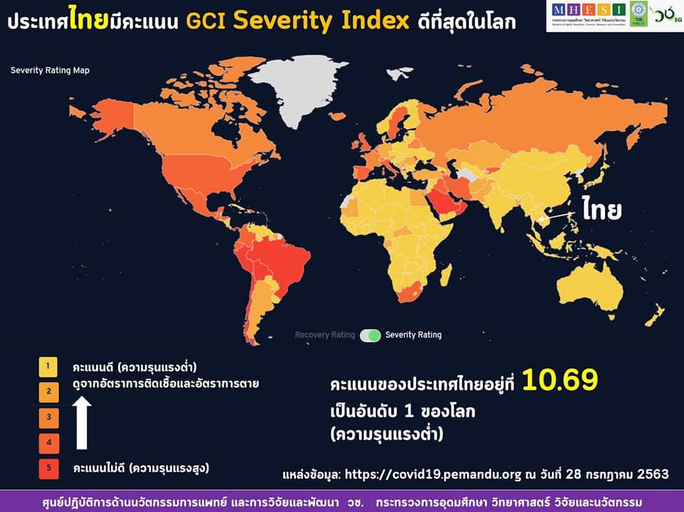 泰国在“全球恢复指数” (Global Recovery Index) 和“全球严重性指数”(Global Severity Index)方面