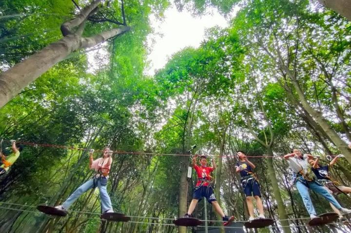 目前,重庆·飞越丛林首届丛林清凉节正在进行中。如果你喜欢极限运动带来的新鲜刺激,不妨去感受一场酣畅淋漓的丛林探险,并且每条线路都挂上洒水式喷雾,让人感觉就像在仙境里玩耍,是夏天必备的清凉打卡点。