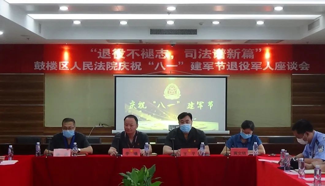 7月31日上午,鼓楼法院召开“退役不褪志,司法谱新篇”主题退役军人座谈会,鼓楼法院党组书记、院长李曦,党组副书记、机关党委书记王平,党组成员、政治部主任康勇,党组成员、纪检监察组组长黄文锦以及全体在职退役军人参加了座谈会。会议开始,全体人员观看了我院自制的一部《军旅岁月风采》视频,合唱了《咱当兵的人》歌曲。一张张老照片勾起了在职退役军人们的回忆,他们回顾了军旅生涯,重温峥嵘岁月,表示将在今后的工作中继续发扬军人听指挥、能吃苦、有韧劲的精神,不辜负院党组的期望,为“温情鼓法、和谐家园”的建设作出新的贡献。李曦院长代表院党组向我院退伍军人表示节日的问候和崇高的敬意,感谢大家在各自工作岗位上为法院发展作出的贡献,并对我院退役军人提出三点建议:一是继续发扬中国人民解放军不畏艰难、敢于亮剑、坚决战斗的优良作风。