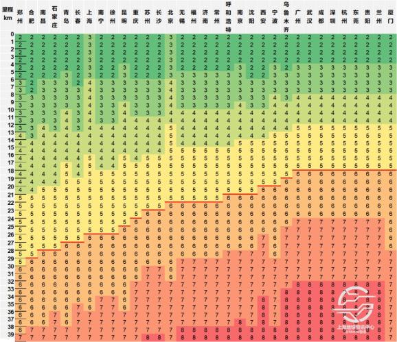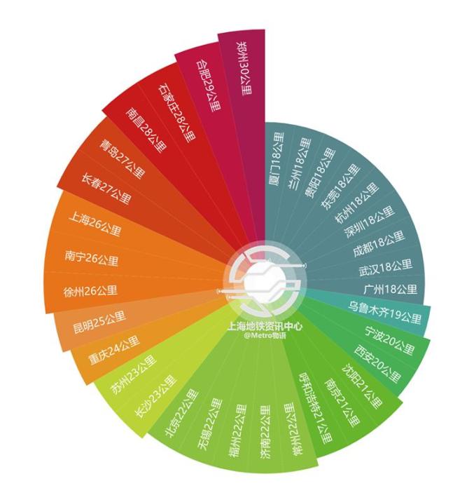 从图中可以看出,5元钱你至少可以乘坐18公里(广州、武汉、成都、深圳、杭州、东莞、贵阳、兰州、厦门超过18公里即收费6元);在郑州你可以坐得最远,只要不超过30公里,5元已经足够了。而上海位于居中靠前的位置,同南宁、徐州并列,5元最远能坐26公里。